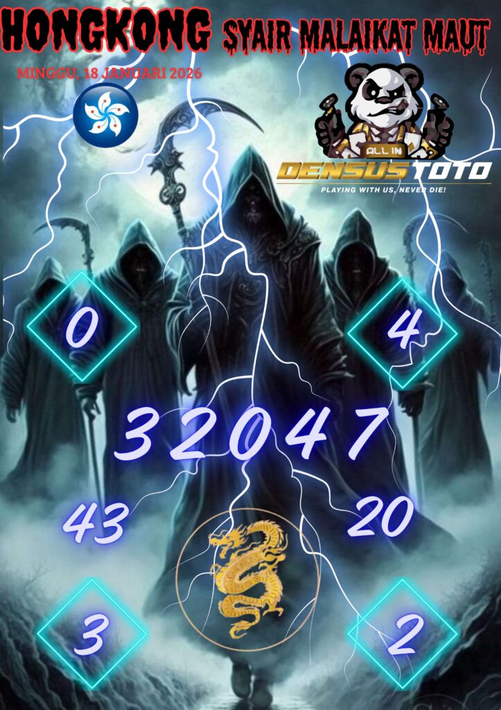 Prediksi DENSUSTOTO menyediakan Syair Togel Hongkong resmi yang dapat anda saksikan dalam situs judi togel online ini. Setiap pemain judi togel online yang tidak memandang dan mengenal syair togel hongkong pastilah kurang mujur buat mendapati angka keluaran togel terjitu. Lantaran itu sekarang situs judi togel online DENSUS TOTO sekarang akan memberikan anda bocoran bagaimana caranya mendapati nomor keluaran prediksi hongkong dari syair togel hk terjitu. Sekarang anda cuma perlu dan mengenal code syair hongkong ini merupakan prediksi hongkong yang dituang terdapat sifat code syair. Maka serius tidak bertanya-tanya jikalau sejumlah penggemar togel begitu menyintai prediksi syair togel ini. Buat prediksi syair hongkong dapat dipakai buat bahan ketidaksamaan mencari angka jitu yang bisa keluar pada hari ini. Karenanya berhati-hatilah selalu pada setiap terdapat dipicu di situ dapat anda angka bermain 2D, 3D dan 4D.