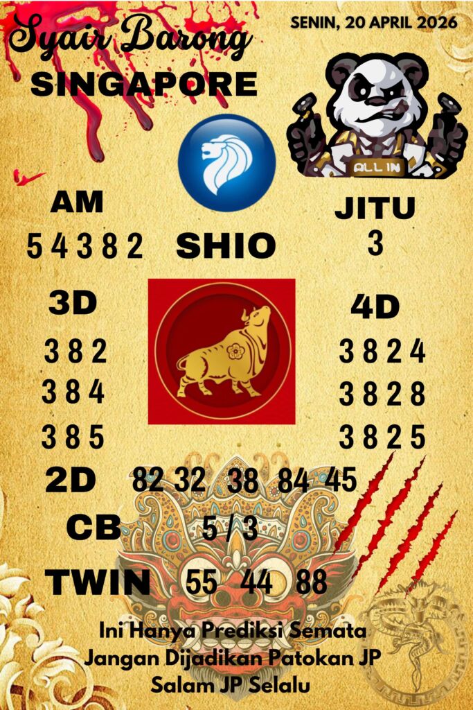 Prediksi DENSUSTOTO menyediakan Syair Togel Singapore resmi yang dapat anda saksikan dalam situs judi togel online ini. Setiap pemain judi togel online yang tidak memandang dan mengenal syair togel singapore pastilah kurang mujur buat mendapati angka keluaran togel terjitu. Lantaran itu sekarang situs judi togel online DENSUS TOTO sekarang akan memberikan anda bocoran bagaimana caranya mendapati nomor keluaran prediksi singapore dari syair togel sgp terjitu. Sekarang anda cuma perlu dan mengenal code syair singapore ini merupakan prediksi singapore yang dituang terdapat sifat code syair. Maka serius tidak bertanya-tanya jikalau sejumlah penggemar togel begitu menyintai prediksi syair togel ini. Buat prediksi syair singapore dapat dipakai buat bahan ketidaksamaan mencari angka jitu yang bisa keluar pada hari ini. Karenanya berhati-hatilah selalu pada setiap terdapat dipicu di situ dapat anda angka bermain 2D, 3D dan 4D