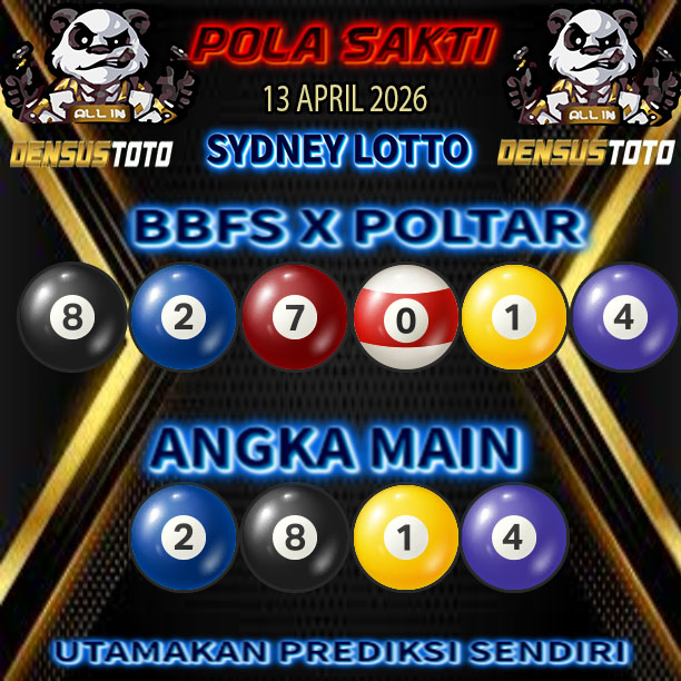 Prediksi DENSUSTOTO menyediakan Syair Togel Sydney resmi yang dapat anda saksikan dalam situs judi togel online ini. Setiap pemain judi togel online yang tidak memandang dan mengenal syair togel sydney pastilah kurang mujur buat mendapati angka keluaran togel terjitu. Lantaran itu sekarang situs judi togel online DENSUS TOTO sekarang akan memberikan anda bocoran bagaimana caranya mendapati nomor keluaran prediksi sydney dari syair togel sgp terjitu. Sekarang anda cuma perlu dan mengenal code syair sydney ini merupakan prediksi sydney yang dituang terdapat sifat code syair. Maka serius tidak bertanya-tanya jikalau sejumlah penggemar togel begitu menyintai prediksi syair togel ini. Buat prediksi syair sydney dapat dipakai buat bahan ketidaksamaan mencari angka jitu yang bisa keluar pada hari ini. Karenanya berhati-hatilah selalu pada setiap terdapat dipicu di situ dapat anda angka bermain 2D, 3D dan 4D