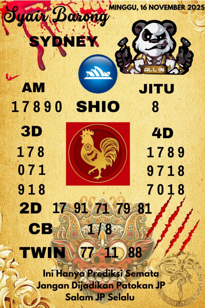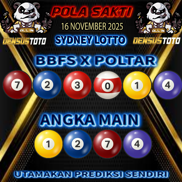Prediksi DENSUSTOTO menyediakan Syair Togel Sydney resmi yang dapat anda saksikan dalam situs judi togel online ini. Setiap pemain judi togel online yang tidak memandang dan mengenal syair togel sydney pastilah kurang mujur buat mendapati angka keluaran togel terjitu. Lantaran itu sekarang situs judi togel online DENSUS TOTO sekarang akan memberikan anda bocoran bagaimana caranya mendapati nomor keluaran prediksi sydney dari syair togel sgp terjitu. Sekarang anda cuma perlu dan mengenal code syair sydney ini merupakan prediksi sydney yang dituang terdapat sifat code syair. Maka serius tidak bertanya-tanya jikalau sejumlah penggemar togel begitu menyintai prediksi syair togel ini. Buat prediksi syair sydney dapat dipakai buat bahan ketidaksamaan mencari angka jitu yang bisa keluar pada hari ini. Karenanya berhati-hatilah selalu pada setiap terdapat dipicu di situ dapat anda angka bermain 2D, 3D dan 4D