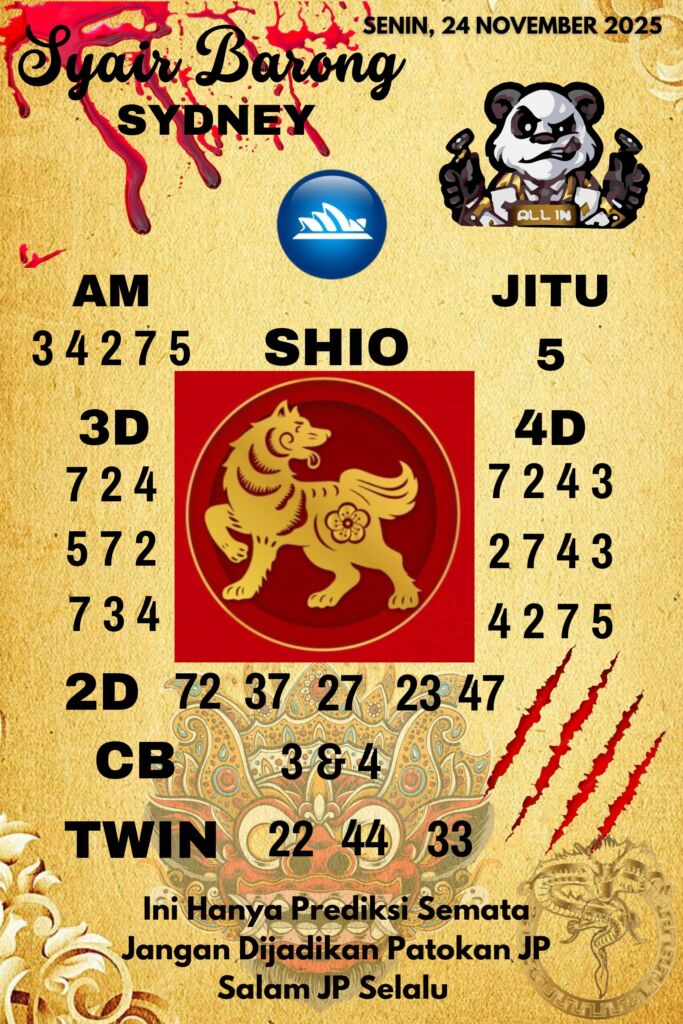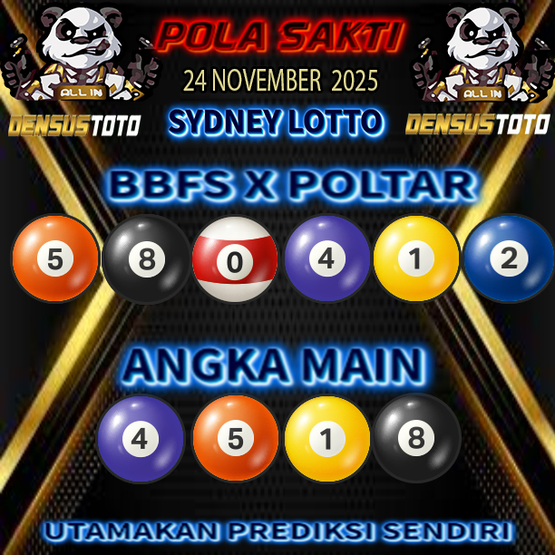 Prediksi DENSUSTOTO menyediakan Syair Togel Sydney resmi yang dapat anda saksikan dalam situs judi togel online ini. Setiap pemain judi togel online yang tidak memandang dan mengenal syair togel sydney pastilah kurang mujur buat mendapati angka keluaran togel terjitu. Lantaran itu sekarang situs judi togel online DENSUS TOTO sekarang akan memberikan anda bocoran bagaimana caranya mendapati nomor keluaran prediksi sydney dari syair togel sgp terjitu. Sekarang anda cuma perlu dan mengenal code syair sydney ini merupakan prediksi sydney yang dituang terdapat sifat code syair. Maka serius tidak bertanya-tanya jikalau sejumlah penggemar togel begitu menyintai prediksi syair togel ini. Buat prediksi syair sydney dapat dipakai buat bahan ketidaksamaan mencari angka jitu yang bisa keluar pada hari ini. Karenanya berhati-hatilah selalu pada setiap terdapat dipicu di situ dapat anda angka bermain 2D, 3D dan 4D
