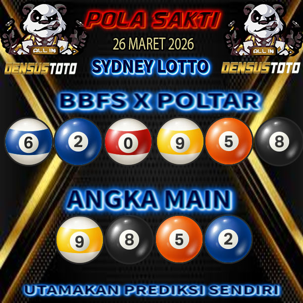 Prediksi DENSUSTOTO menyediakan Syair Togel Sydney resmi yang dapat anda saksikan dalam situs judi togel online ini. Setiap pemain judi togel online yang tidak memandang dan mengenal syair togel sydney pastilah kurang mujur buat mendapati angka keluaran togel terjitu. Lantaran itu sekarang situs judi togel online DENSUS TOTO sekarang akan memberikan anda bocoran bagaimana caranya mendapati nomor keluaran prediksi sydney dari syair togel sgp terjitu. Sekarang anda cuma perlu dan mengenal code syair sydney ini merupakan prediksi sydney yang dituang terdapat sifat code syair. Maka serius tidak bertanya-tanya jikalau sejumlah penggemar togel begitu menyintai prediksi syair togel ini. Buat prediksi syair sydney dapat dipakai buat bahan ketidaksamaan mencari angka jitu yang bisa keluar pada hari ini. Karenanya berhati-hatilah selalu pada setiap terdapat dipicu di situ dapat anda angka bermain 2D, 3D dan 4D