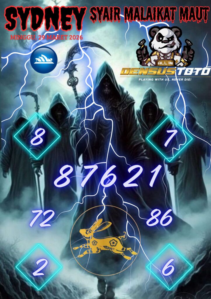 Prediksi DENSUSTOTO menyediakan Syair Togel Sydney resmi yang dapat anda saksikan dalam situs judi togel online ini. Setiap pemain judi togel online yang tidak memandang dan mengenal syair togel sydney pastilah kurang mujur buat mendapati angka keluaran togel terjitu. Lantaran itu sekarang situs judi togel online DENSUS TOTO sekarang akan memberikan anda bocoran bagaimana caranya mendapati nomor keluaran prediksi sydney dari syair togel sgp terjitu. Sekarang anda cuma perlu dan mengenal code syair sydney ini merupakan prediksi sydney yang dituang terdapat sifat code syair. Maka serius tidak bertanya-tanya jikalau sejumlah penggemar togel begitu menyintai prediksi syair togel ini. Buat prediksi syair sydney dapat dipakai buat bahan ketidaksamaan mencari angka jitu yang bisa keluar pada hari ini. Karenanya berhati-hatilah selalu pada setiap terdapat dipicu di situ dapat anda angka bermain 2D, 3D dan 4D